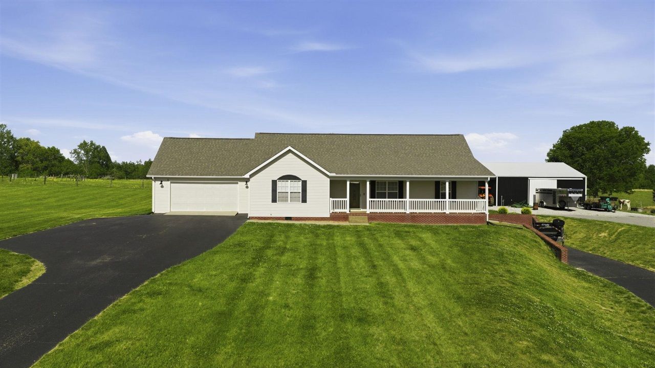Charming Country Retreat with Scenic Views & Endless Amenities Experience peaceful country living in this beautifully maintained 4-bedroom, 3-bath home offering stunning views and a spacious open-concept layoutâ??perfect for both everyday living and entertaining. The inviting interior features a large primary suite complete with a relaxing garden tub in the private bath, a walk-in closet â?? your own personal retreat at the end of the day. The well-appointed kitchen boasts a farmhouse sink, generous counter space, and a full suite of appliances, including refrigerator, stove, dishwasher, microwave & washer, and dryer in the spacious laundry room off of the kitchen. Cozy up in the living room beside the ventless fireplace, creating the perfect ambiance for quiet evenings. The finished basement adds even more living space, including a fourth bedroom, a partially finished area ready for customization. The property has two 80-gallon water heaters and dual paved driveways. Ample parking and storage abound with a 2-car garage on the main level, a 1-car garage in the basement, and an additional utility garage with walk-out access. Step outside and enjoy your own private oasis featuring an above-ground pool, a firepit, a spacious patio with a canopy, and breathtaking country viewsâ??ideal for outdoor gatherings. The property also includes a barn and an impressive 40x40 building with a 12-foot overhang, perfect for farm animals, equipment, or workshop space. The basement has 10-inch concrete walls, house was constructed with 2x6 walls and extra installation throughout. Floor joist 12 on center, trusses 16 on center. This property truly has it allâ??space, comfort, functionality, and picturesque surroundings. Donâ??t miss your chance to enjoy country living at its finest!
